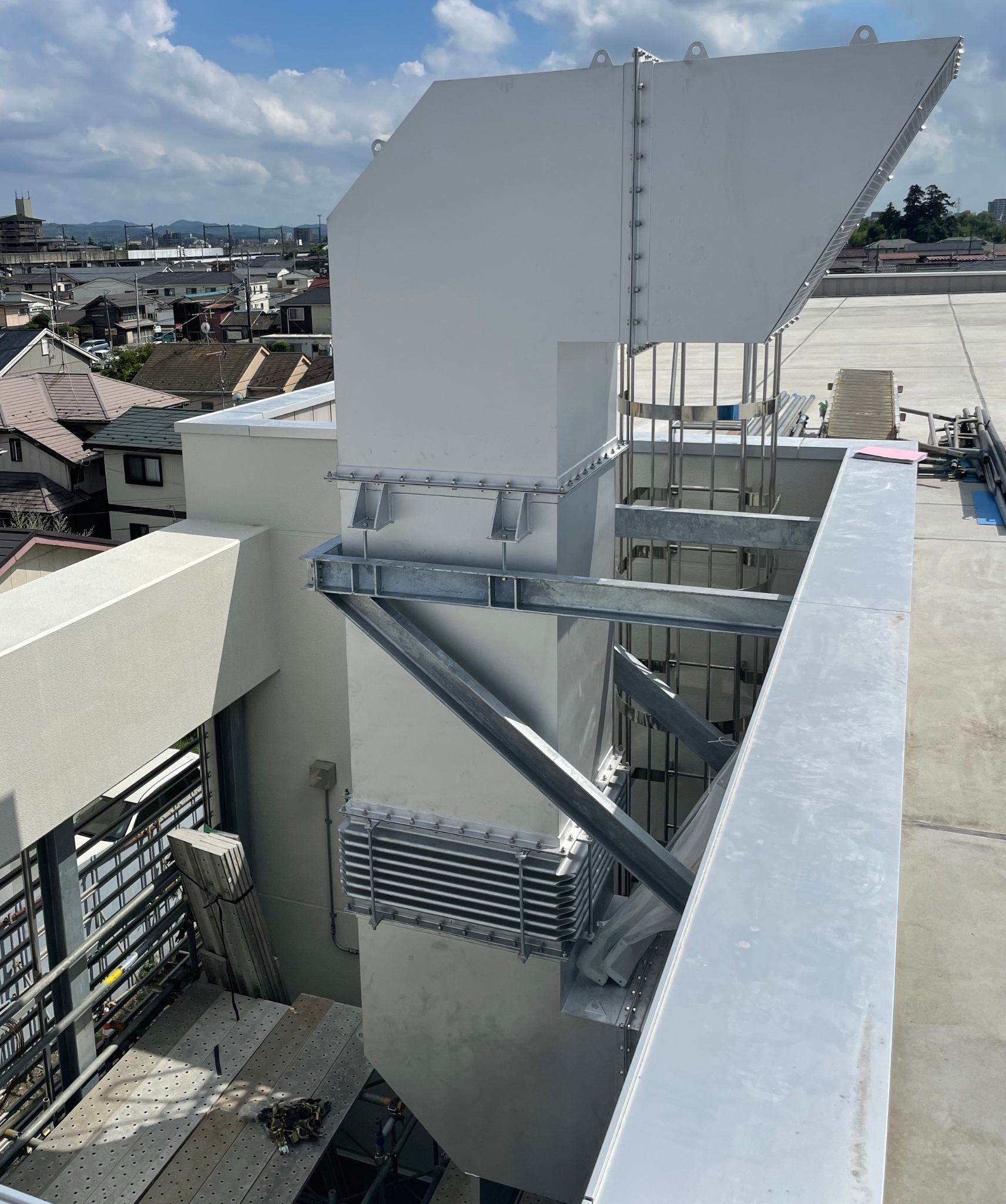 24時間稼働を支える大規模物流センターでは、停電や災害時に備えた非常用電源の整備がますます重要となっています。当社は、千葉県内の物流拠点向けに導入された発電システムに対し、防音およびダクト関連の部材製作を担当いたしました。